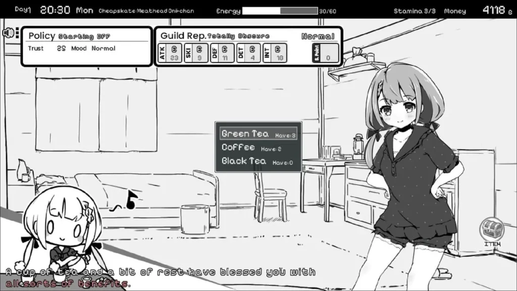Living With Sister: Monochrome Fantasy gameplay hooks you from the start with its charming blend of domestic life and fantasy adventure. I remember my first playthrough, completely overwhelmed by the choices – should I train my sword skills, earn some gold, or just hang out with my sister? 😅 This unique mix is the heart of the experience, a brilliant time management simulation game mechanics that will have you planning your virtual days with the precision of a military general. Your success hinges on balancing your duties as a guild member with your responsibilities at home, making every decision count.