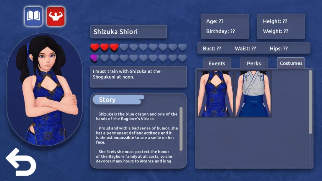 - The Social & Perks Tabs: The new Social tab keeps track of your progress with all 25 characters (including side girls!), while the Perks tab lets you unlock permanent bonuses that make subsequent playthroughs or minigames easier.