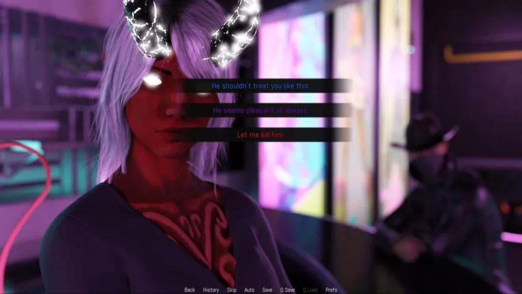 | Purple | Witty / Sarcastic | Unlocks humorous dialogue and can defuse tension with a joke. Might annoy more serious characters. | Unique comedic scenes, specific achievements tied to clever responses. |